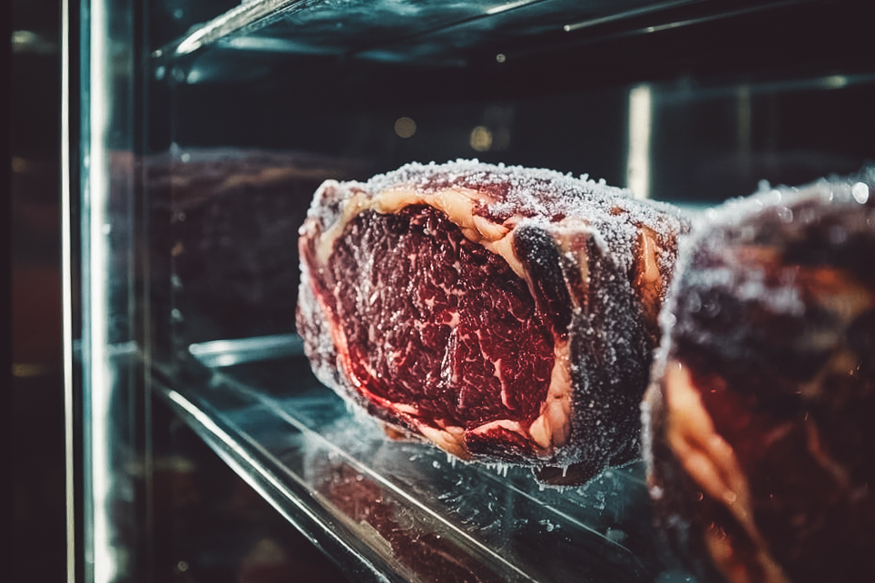 To dry age our premium cuts of meat, we place them on racks in a temperature and humidity-controlled environment. There they sit at specific conditions (32– 36°F at 75–85% humidity) with gentle and consistent air circulation for 30-45 days.